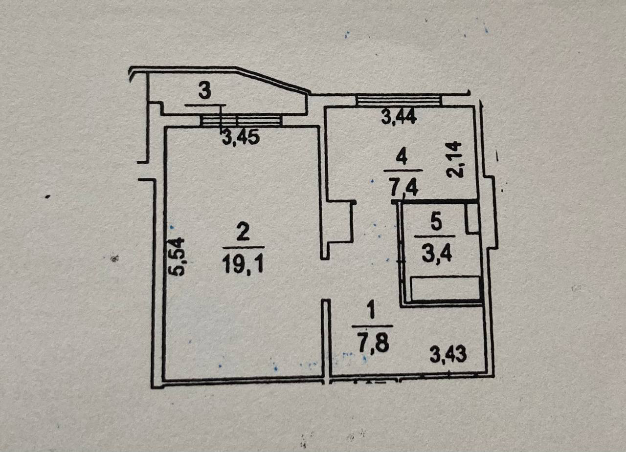 Общая площадь 37.7 м2