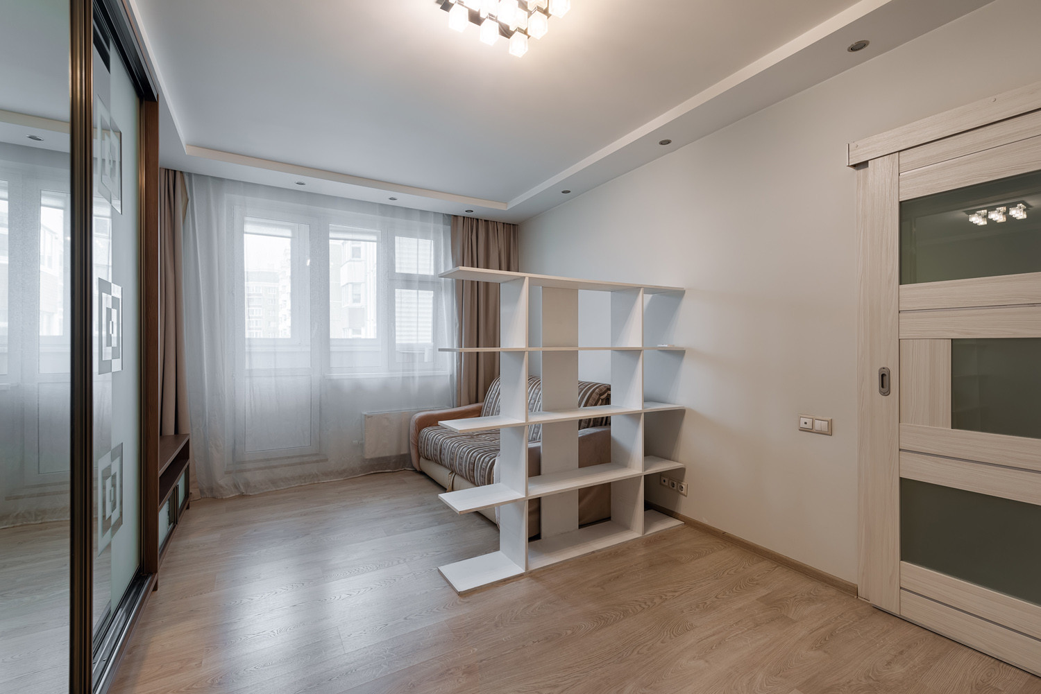 В квартире просторная комната с выходом на застекленную лоджию, уютная кухня, совмещенный санузел. Сделан ремонт из качественных материалов. Окна выходят во двор.
