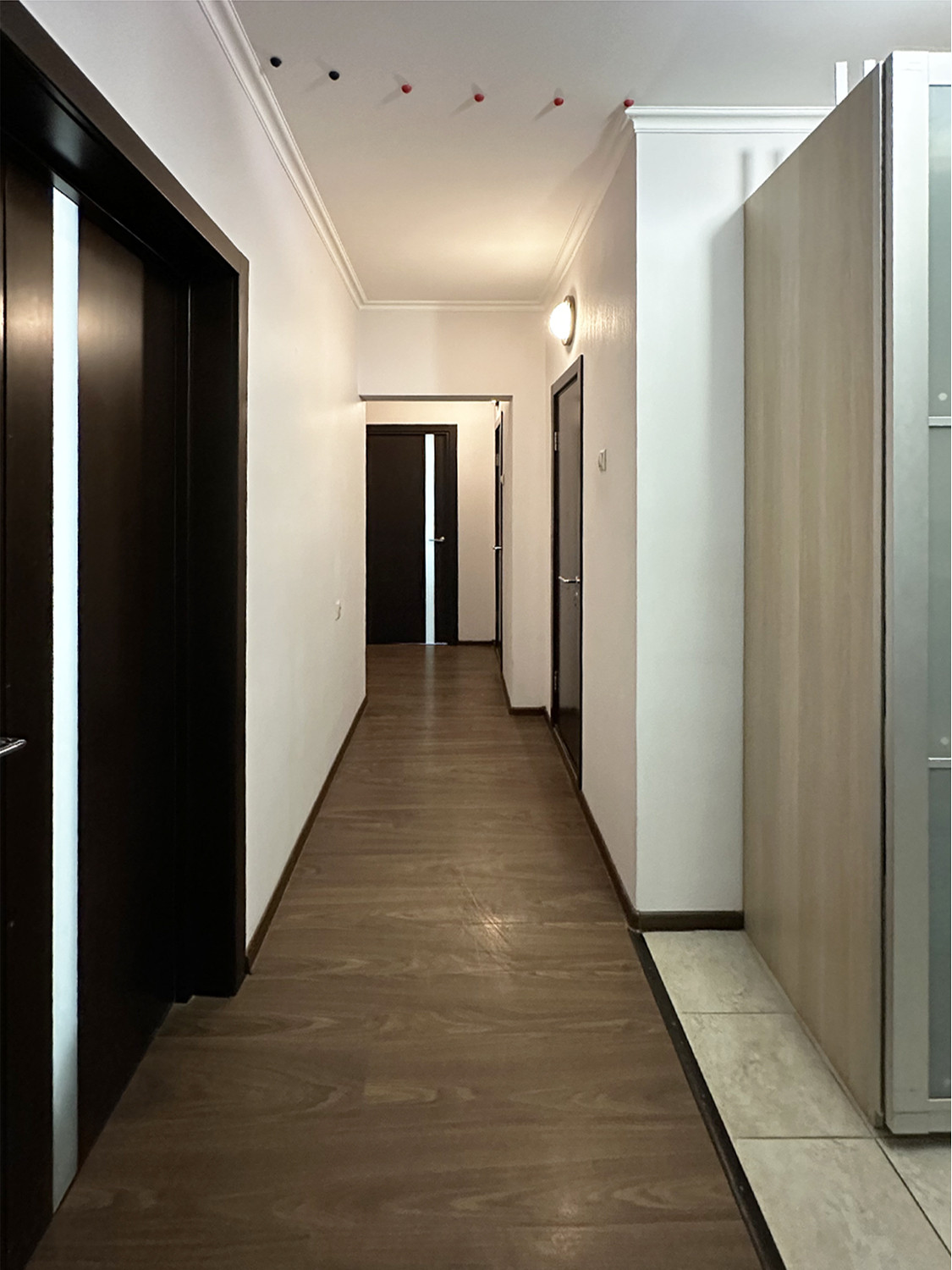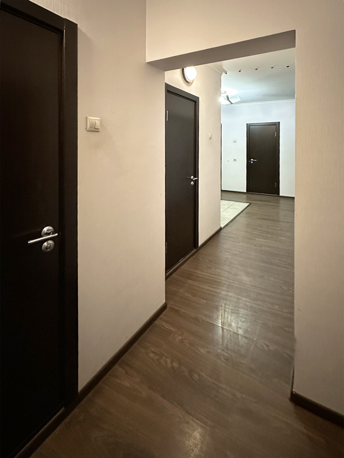 Три изолированных комнаты, два санузла (раздельный и совмещенный с возможностью установить душевую кабину), есть небольшая закрытая гардеробная. Высокий потолок 2,8 м. В квартире приятно находиться, много воздуха, света.