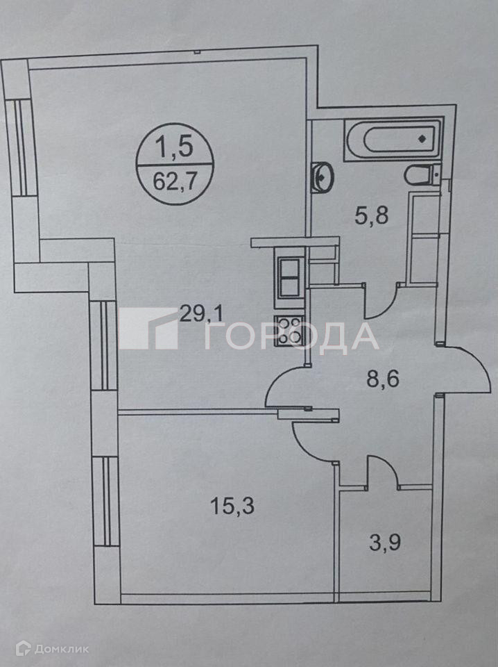 Общая площадь 62.9 м2
