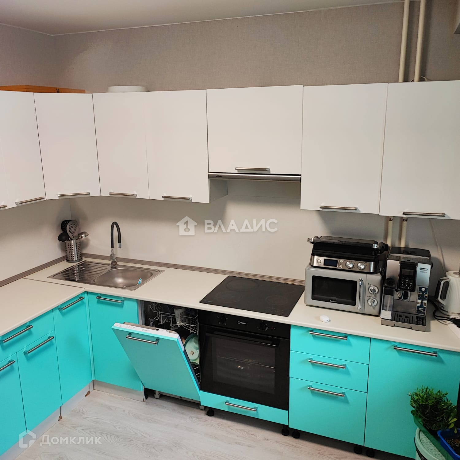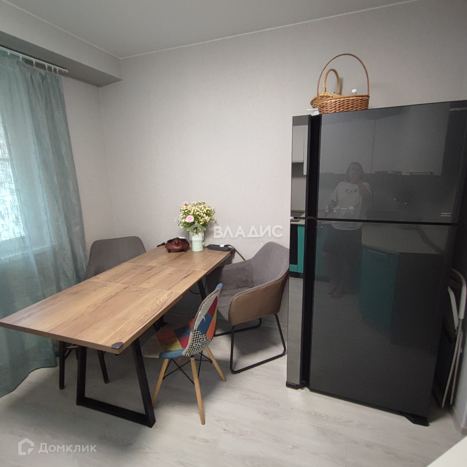 На кухне:вместительный холодильник Hitachi. Встроенная техника Индезит. Обеденный стол
