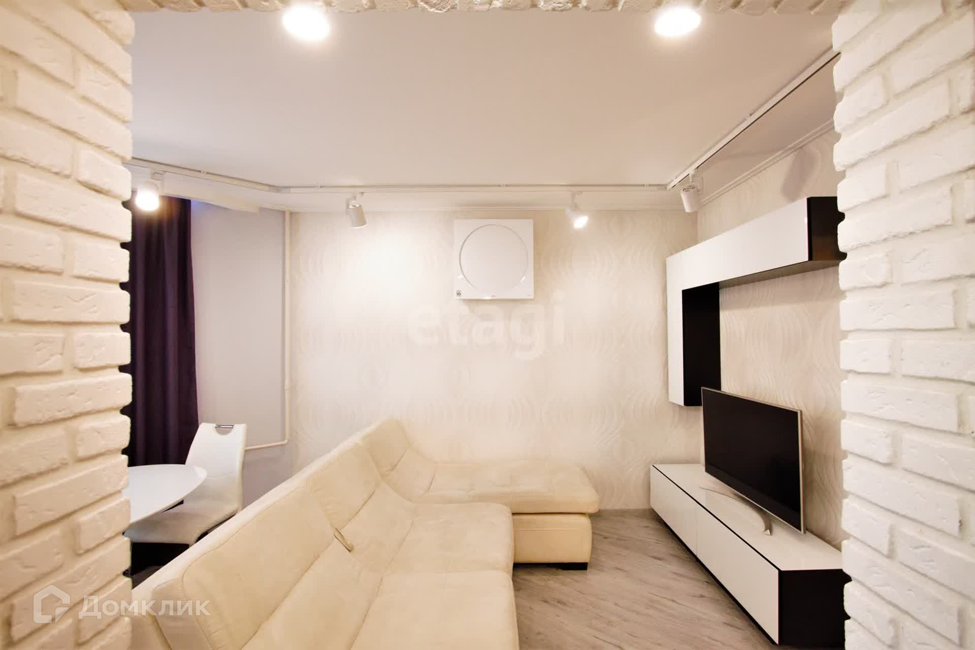 * Гостиная зона с большим обеденным столом, просторным диваном, дизайнерским кондиционером