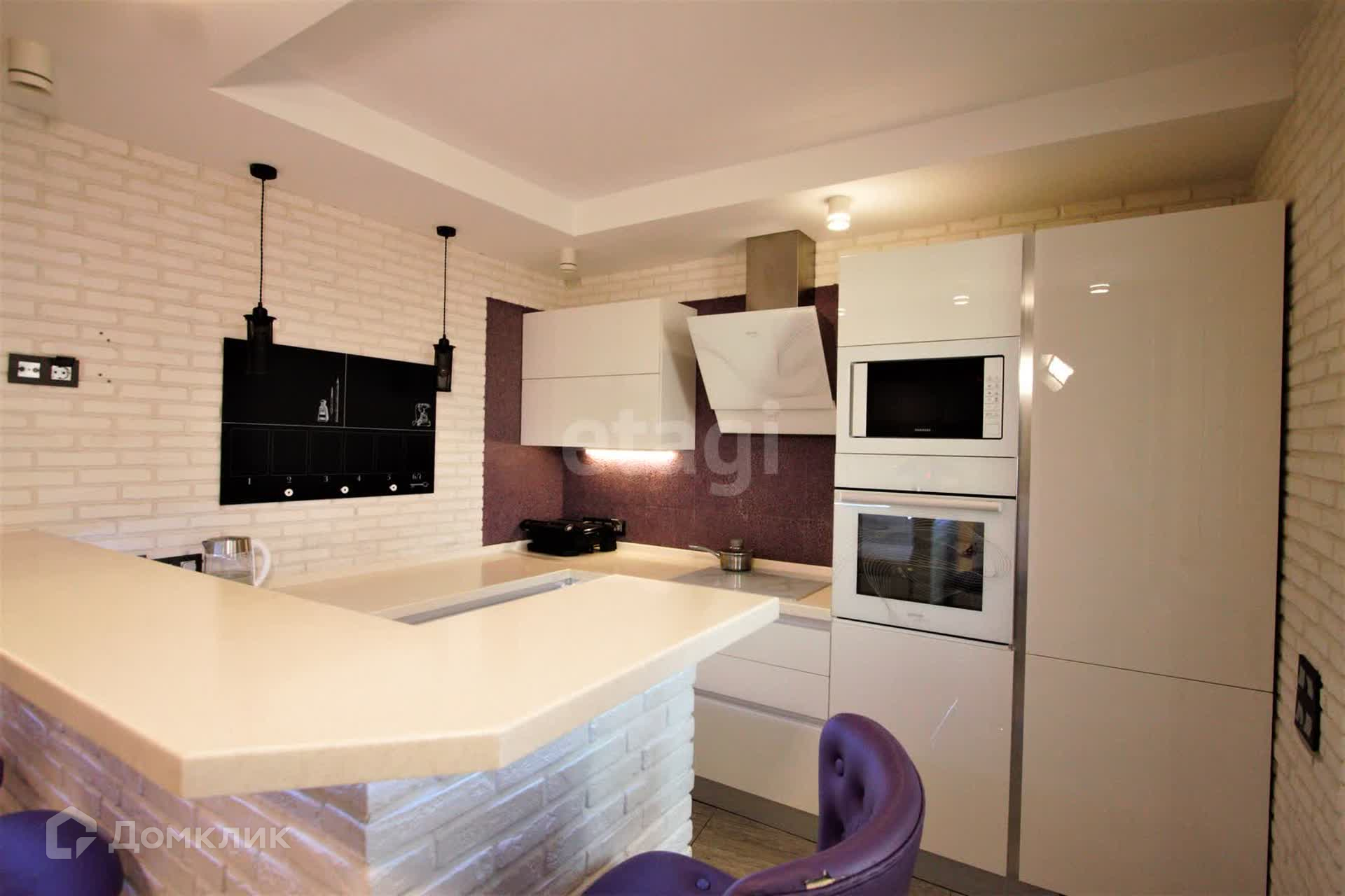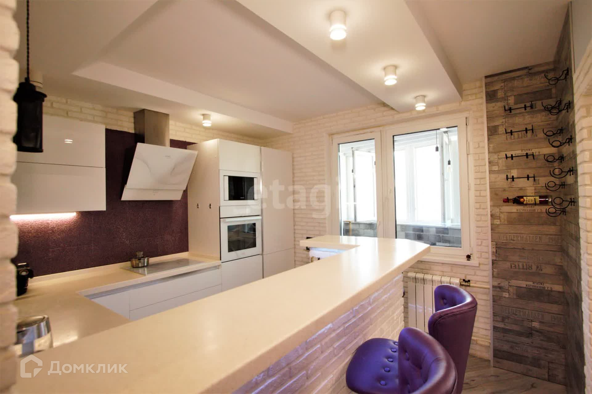 * Кухня с барной стойкой, зоной хранения бутылок, встроенный холодильник Liebherr, посудомоечная машина, варочная панель. Эстетическая подсветка по периметру.