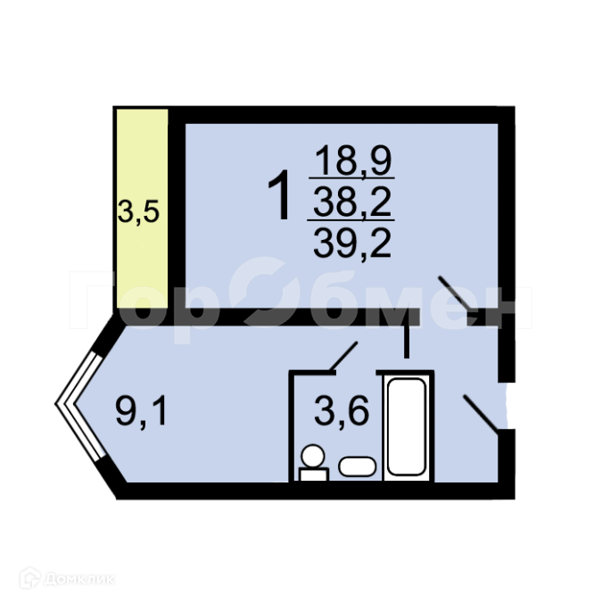 Общая площадь 38.2 м2