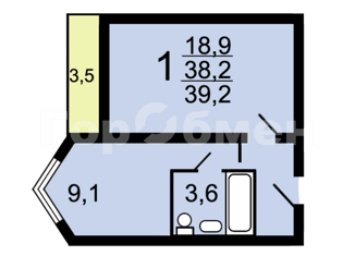 Общая площадь: 38.2 м2