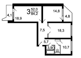 Общая площадь: 52 м2