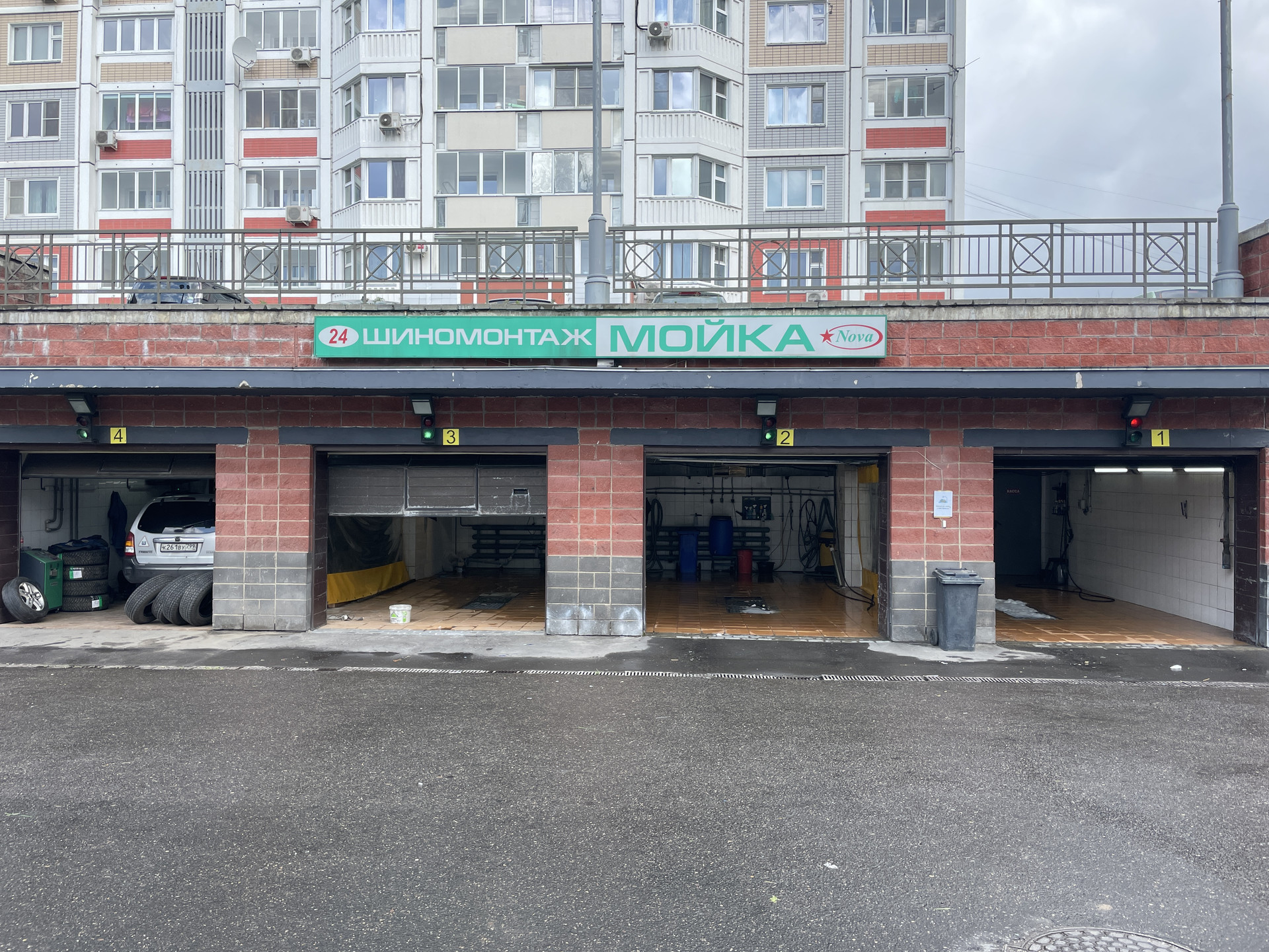 В паркинге присутствует шиномонтаж и мойка.