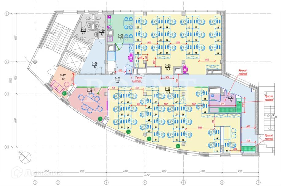 Лот: 95788.   Предлагается в аренду офисный блок, этаж целиком. Выполнен ремонт в 2022 году, open-space на 44 рабочих места, переговорная комната на 6/8 человек, мини-кухня (раковина, холодильник, СВЧ), гардероб с кабинкой для переодевания, встроенные гардеробные шкафы, принтерная зона, зона отдыха, 2 отдельных санузла. Приточно-вытяжная вентиляция. центральное кондиционирование. В ставку аренды включены эксплуатационные расходы и НДС. отдельно оплачиваются услуги клининга, телекоммуникационного провайдера и паркинг. Стоимость 1 машиноместа в подземном паркинге- 16800 руб, наземный- 8640 руб.