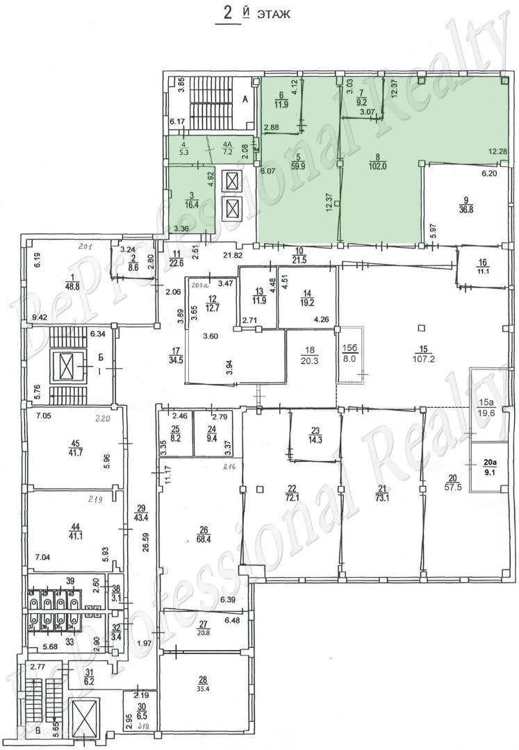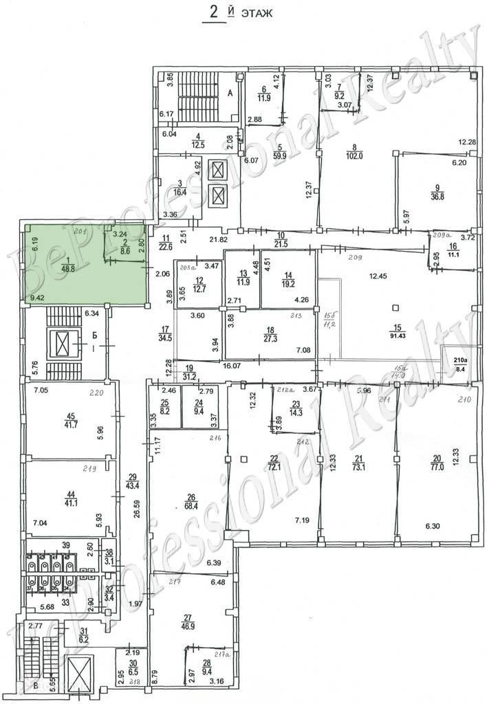 Офис 300 м2 расположен на 2 этаже здания. Помещение кабинетной планировки, состоит из 6 кабинетов различной площади. Офис разделен на три блока с отдельными входами. В помещении выполнен стандартный офисный ремонт, большие окна добавляют дополнительного освещения. Выведена мокрая точка и организована кухня-столовая. Сан. узлы расположены на этаже. Офис оснащен системой вентиляции и кондиционирования.