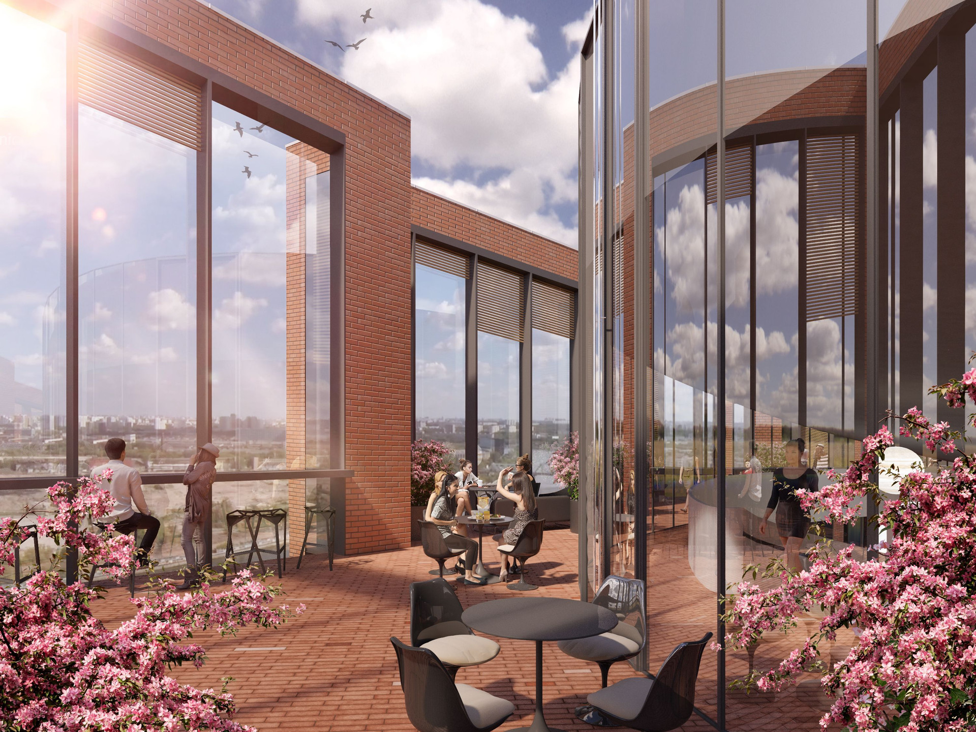 Внутренняя инфраструктура бизнес-центра включает в себя отделение банка, панорамный ресторан с террасой, фитнес-центр, сайкл-студию, салон красоты, химчистку, офис нотариуса и другие объекты.