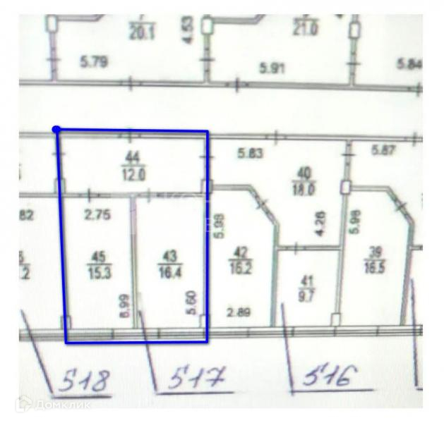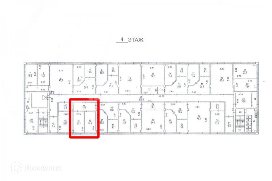 Общая площадь 43.7 м2