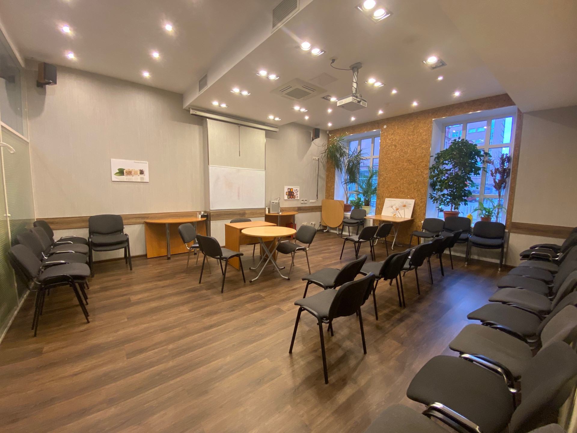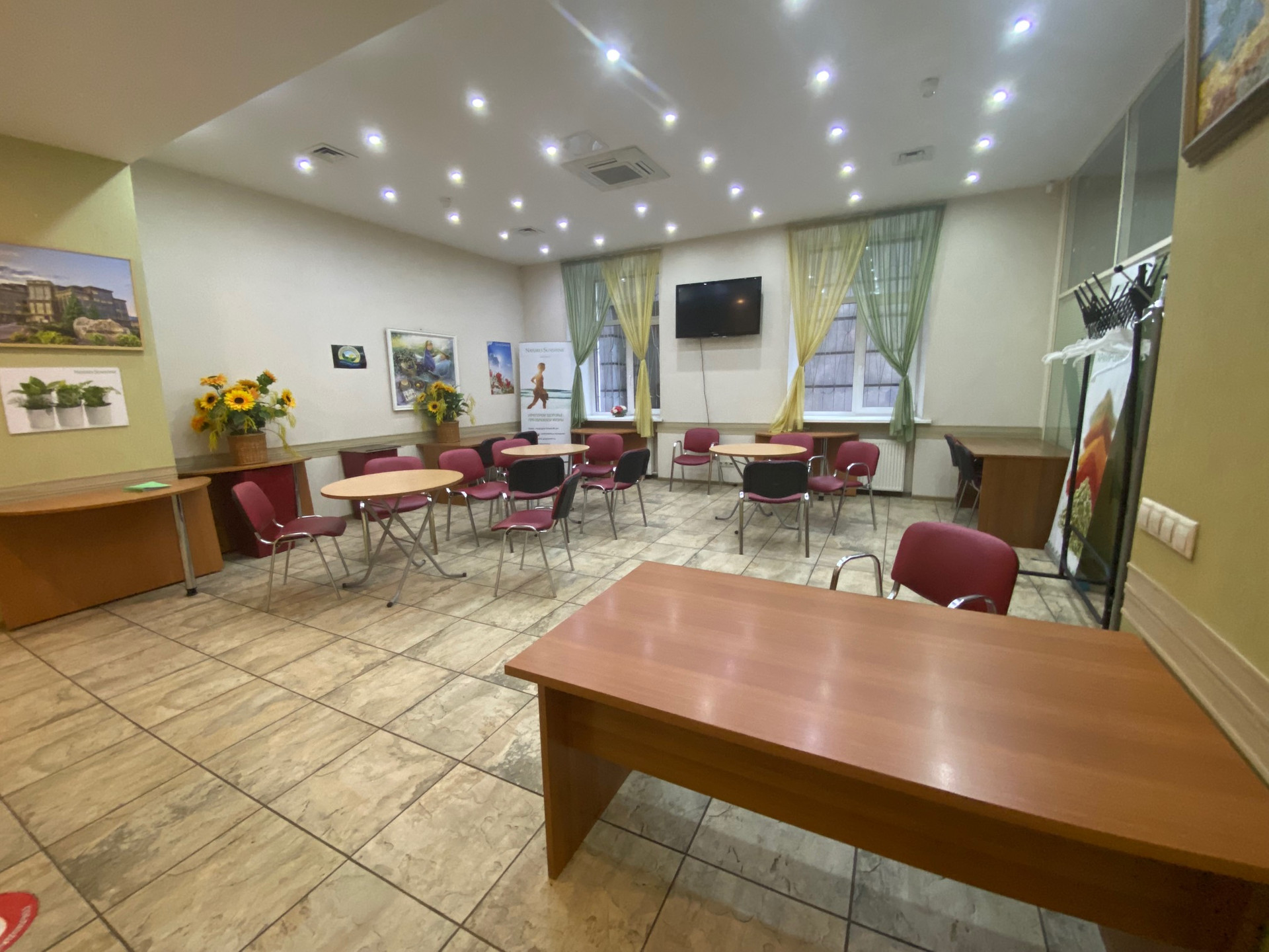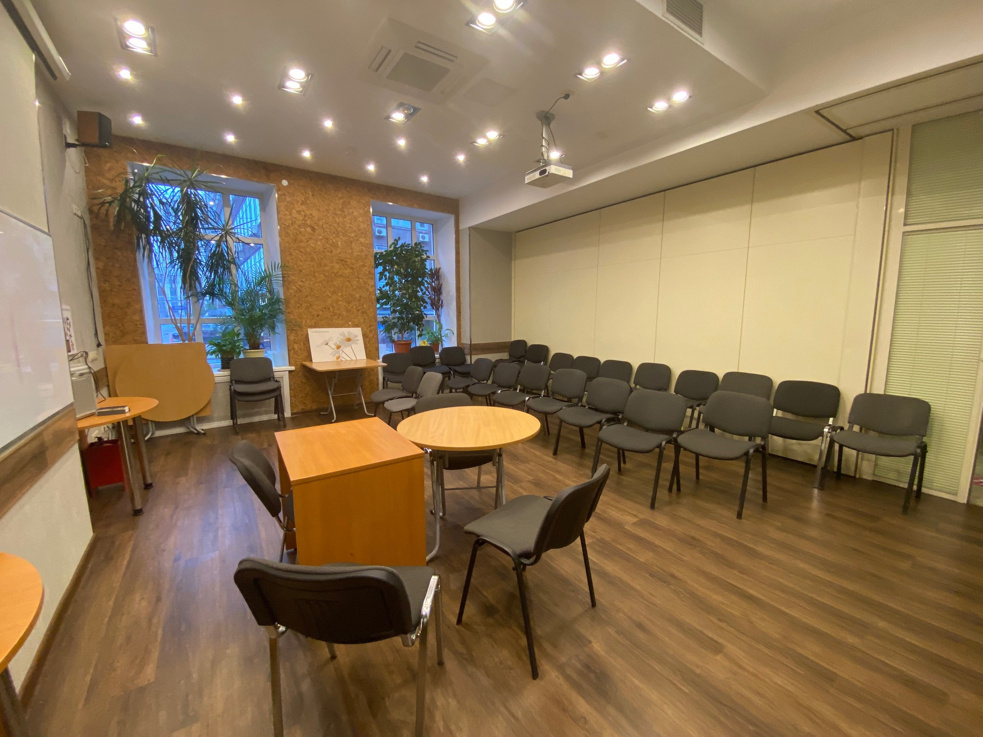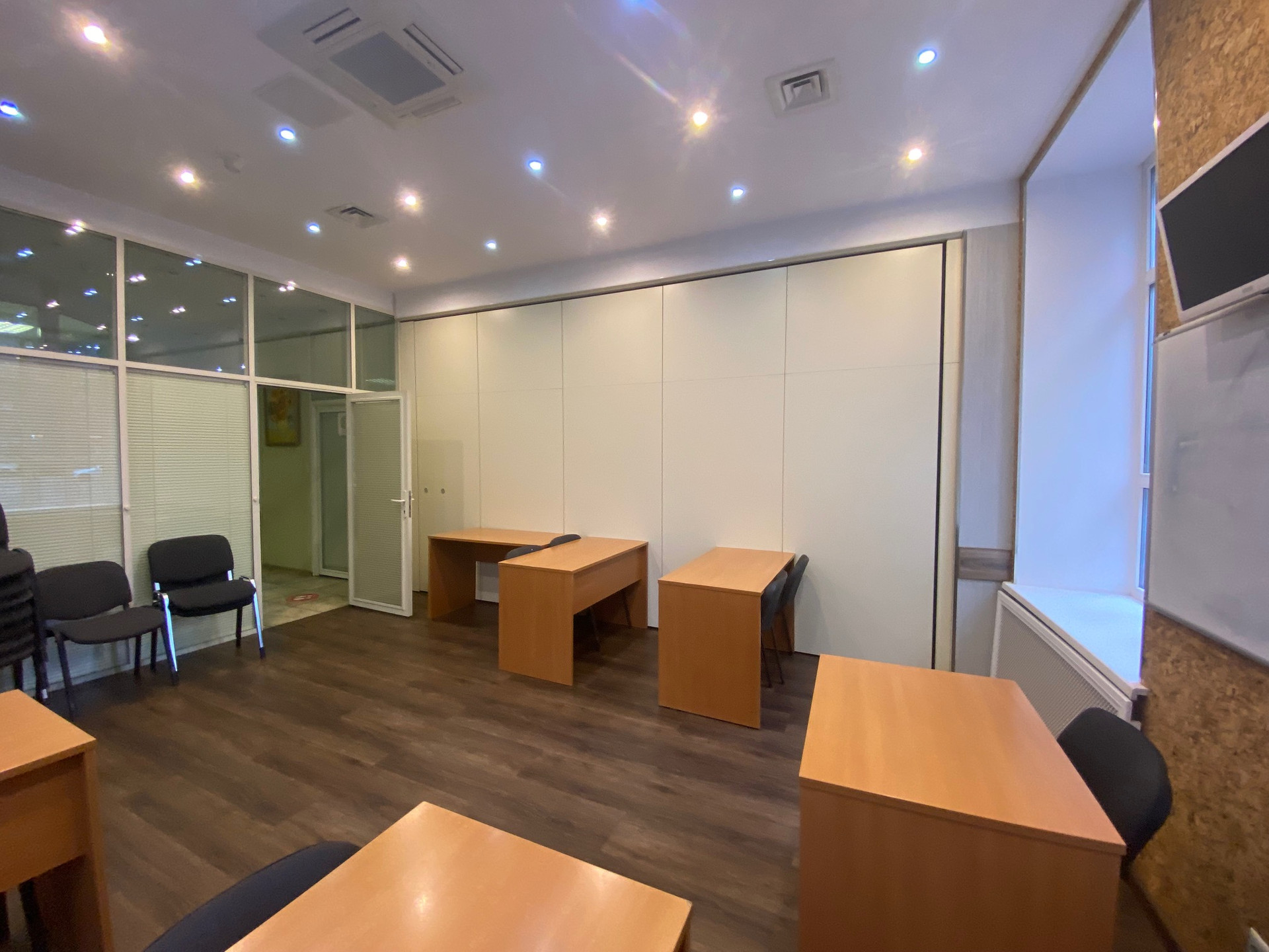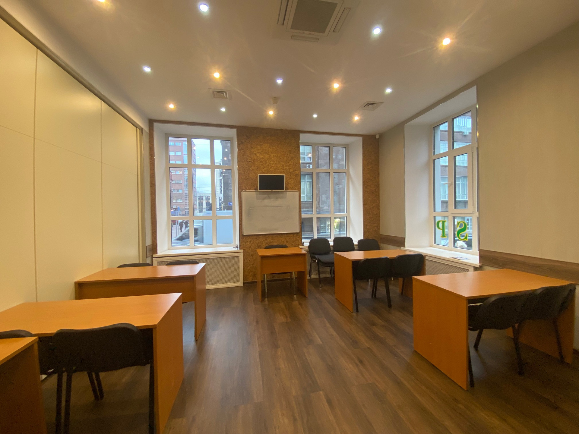 Отдельный вход со стороны Орликова переулка (автомобильный трафик) на первом этаже, в трёх минутах пешком от метро Красные ворота. Центральный зал с раздвижной стеной между комнатами с возможностью увеличения зала до ста метров, приспособлен для проведения конференций, презентаций или под Open Space, высокие потолки, хорошее освещение (как естественное (большие окна), так и искуственное). Четыре кабинета(один с большим окном 20 кв.м. и три комнаты по 15 кв.м. без окон). Офис меблирован.  Две туалетных комнаты и помещение для кухни и столовой. Перед входом в офис парковка под шлагбаум.