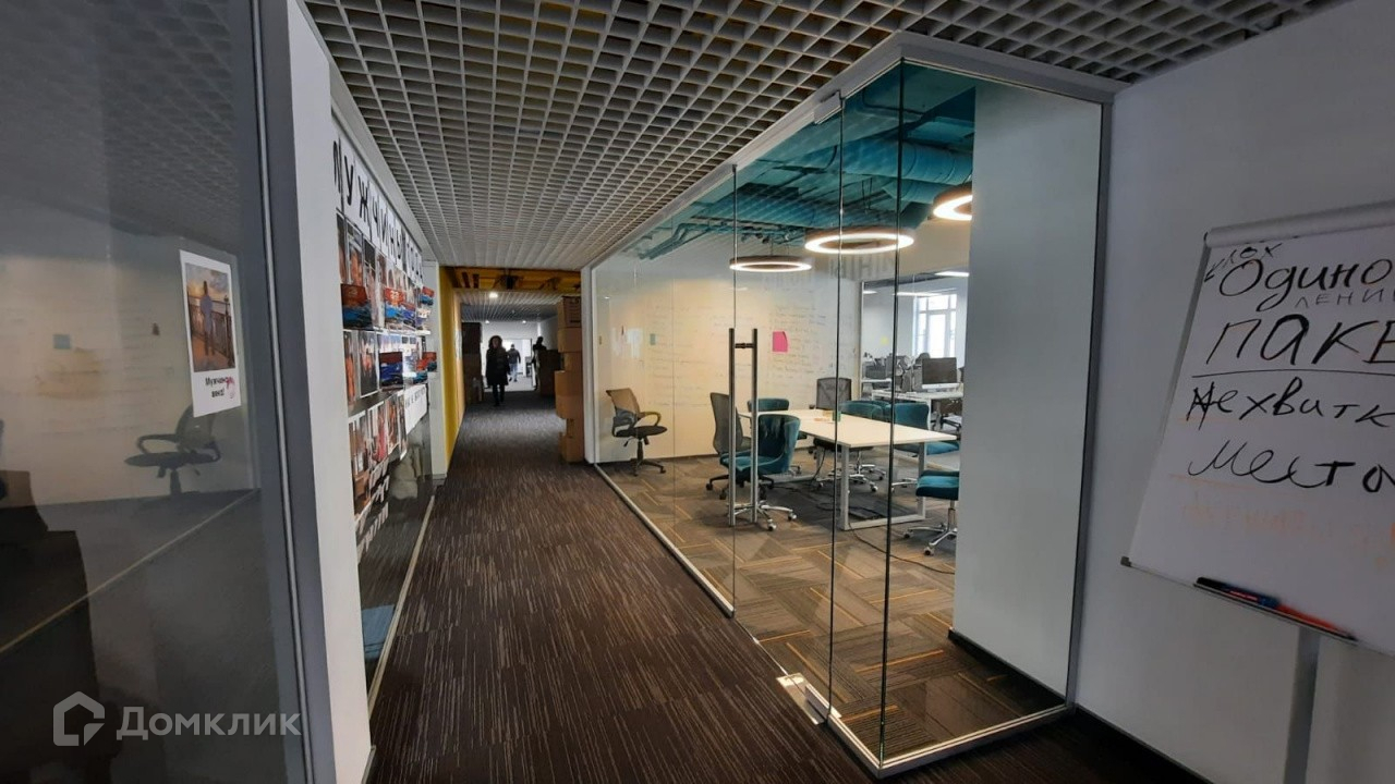 Описание помещения:  Планировка: ресепшн, кабинеты, переговорные, лаунж-зона, кухня, большой open-space и зоны отделов. Есть vip-лифт рядом с кабинетом директора. Рассадка на 170 рабочих мест.