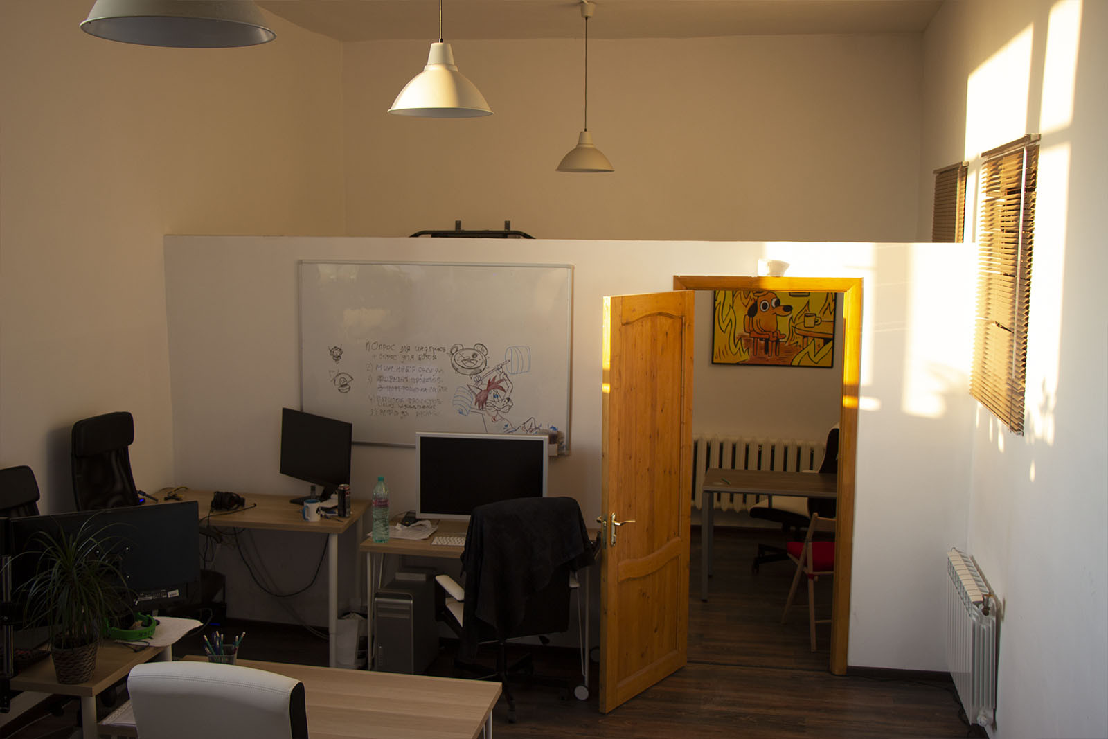 - отдельный кабинет либо переговорка;