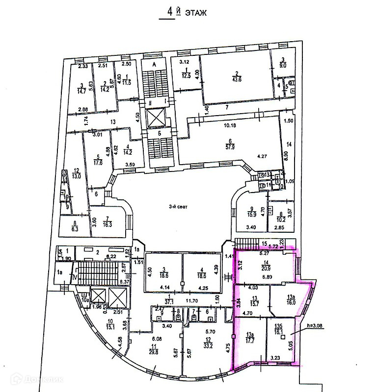 Высота потолков 3.08 м