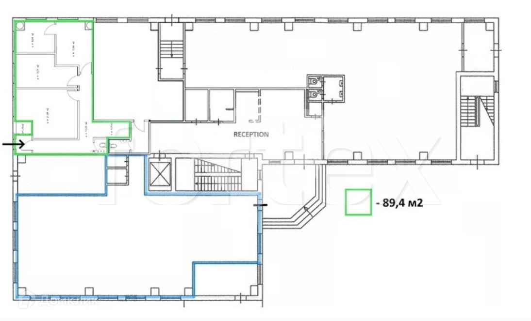 Предлагается в прямую аренду офис класса B+ общей площадью 89 квадр. метров в бизнес-центре "Crosswall".
