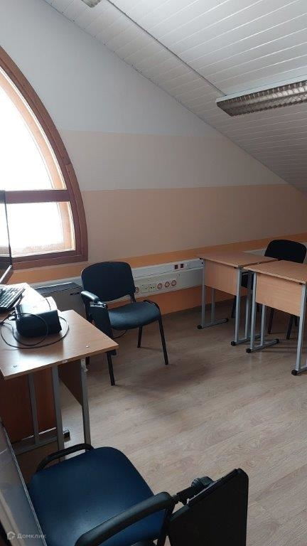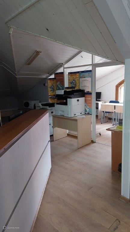 Мансардный этаж, высокие потолки и большие окна.