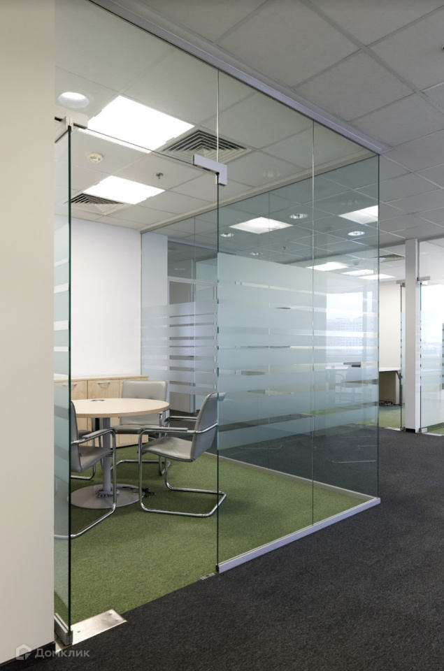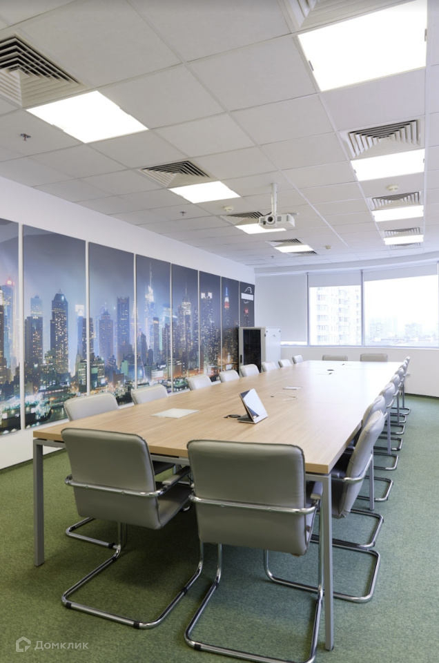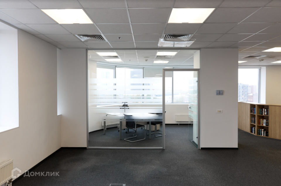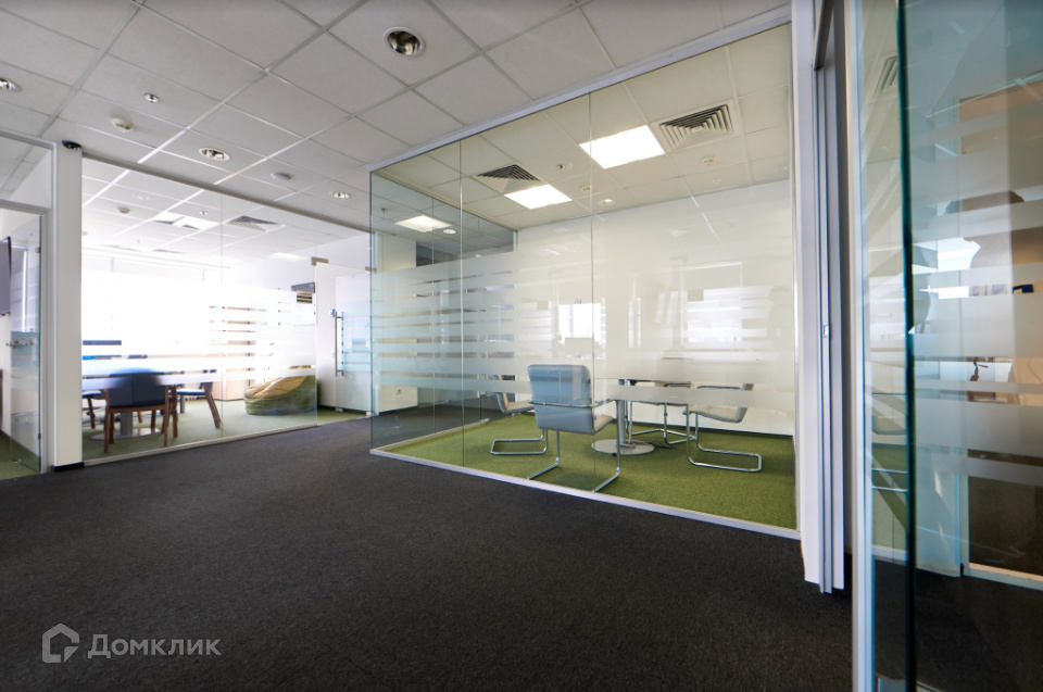 Офис со стандартной отделкой, внутри смешанная планировка, опенспейс, конференц зал, 10 кабинетов, опенспейс, 2 переговорных, серверная, кухня, тип окон - витринные, с/у в блоке.