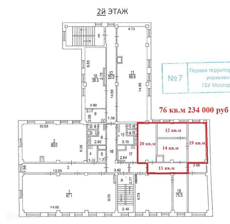 Офис, 76 м2, в аренду в Москве, Калошин переулок, 4