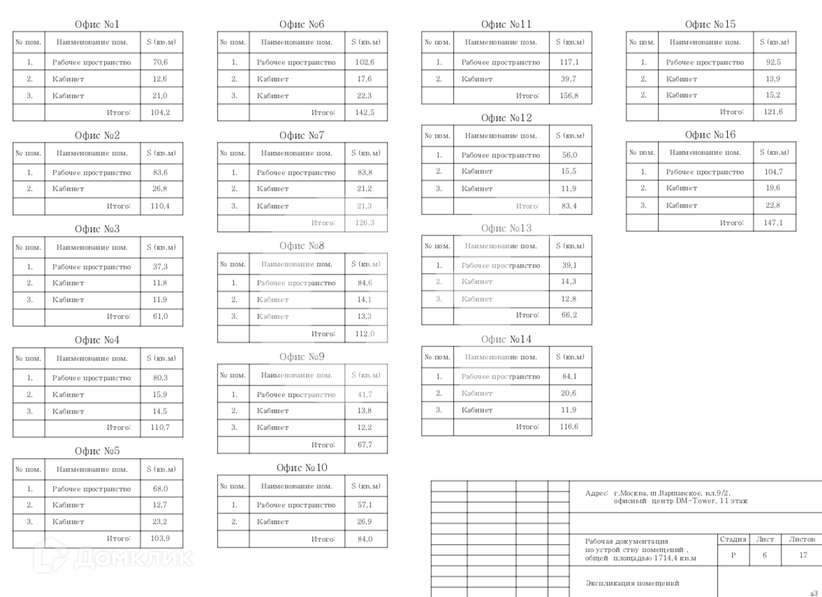 Общая площадь - 5840 кв. м. Этаж 17 Готовность - готово к въезду. Всего этажей - 17.Арендная ставка - 30 000 руб. за кв. м в год, налоги - НДС включен. Цена за помещение в месяц - 14 600 000 руб.