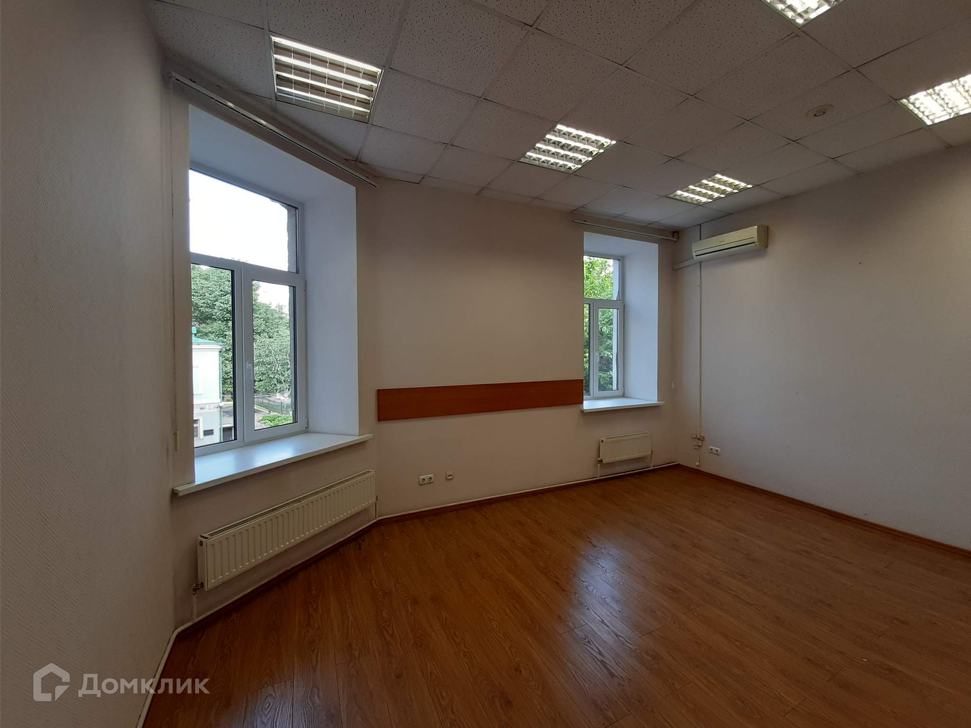 В офисе местное кондиционирование, вентиляция  - приточная, центральное отопление, пожарная сигнализация.