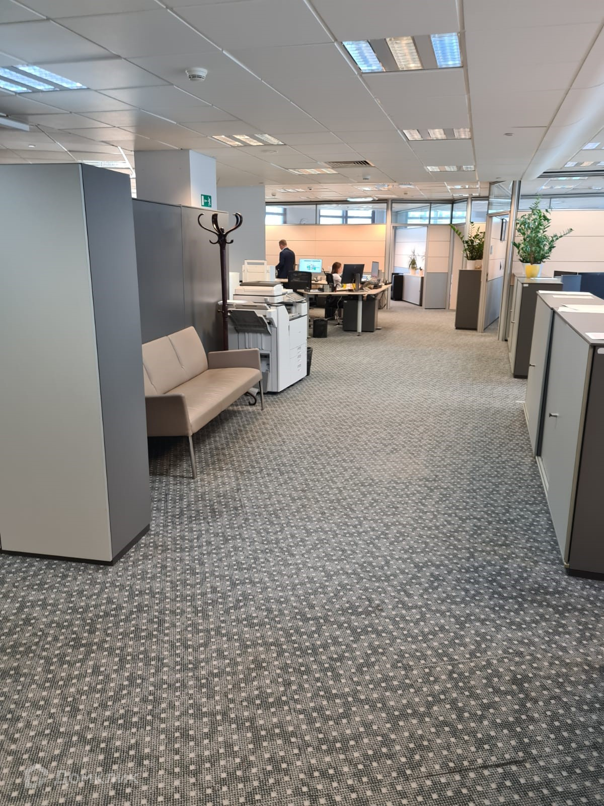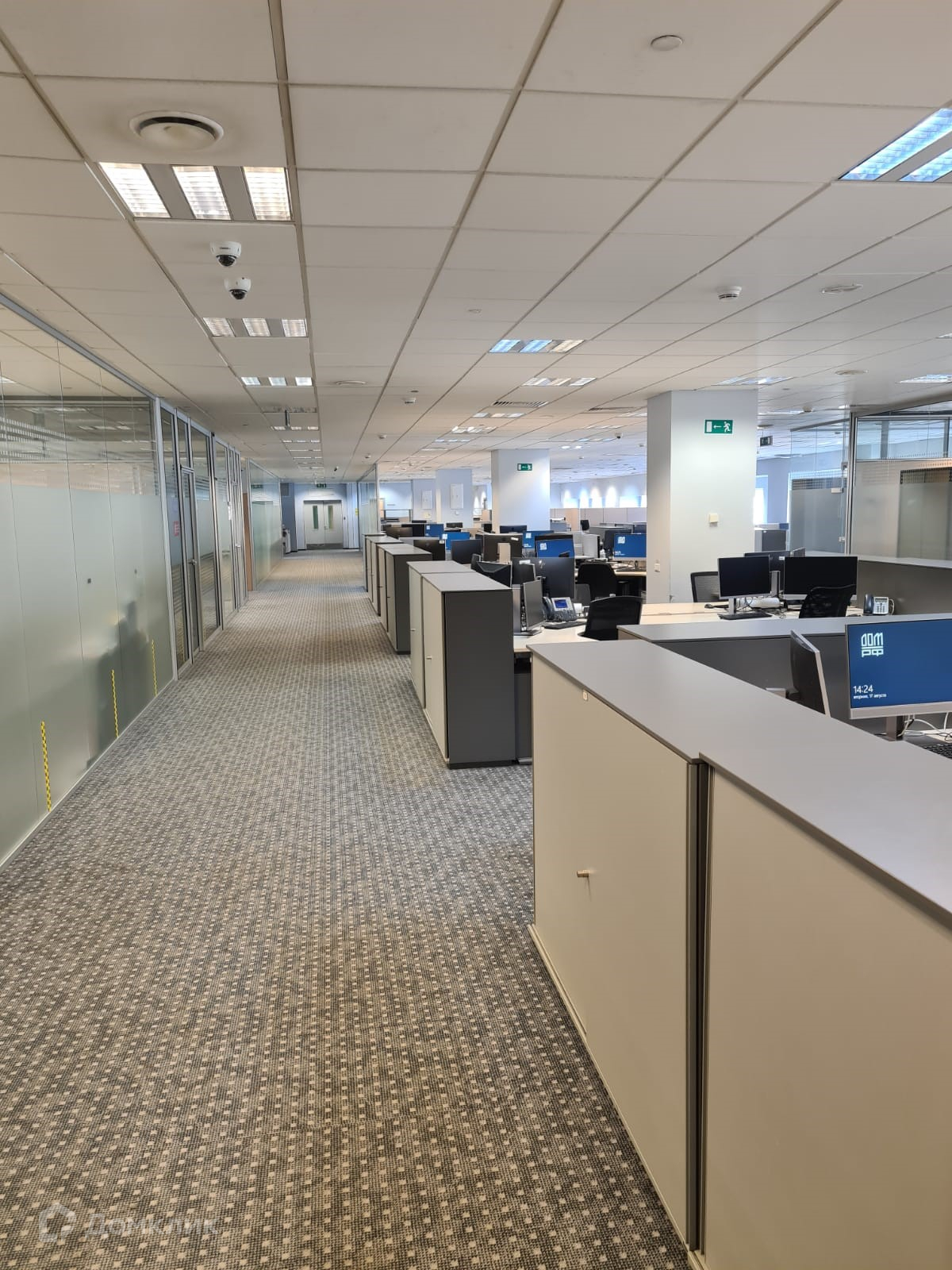 Смешанная планировка с преобладанием открытых пространств, выделена зона руководства, переговорные, с/у.