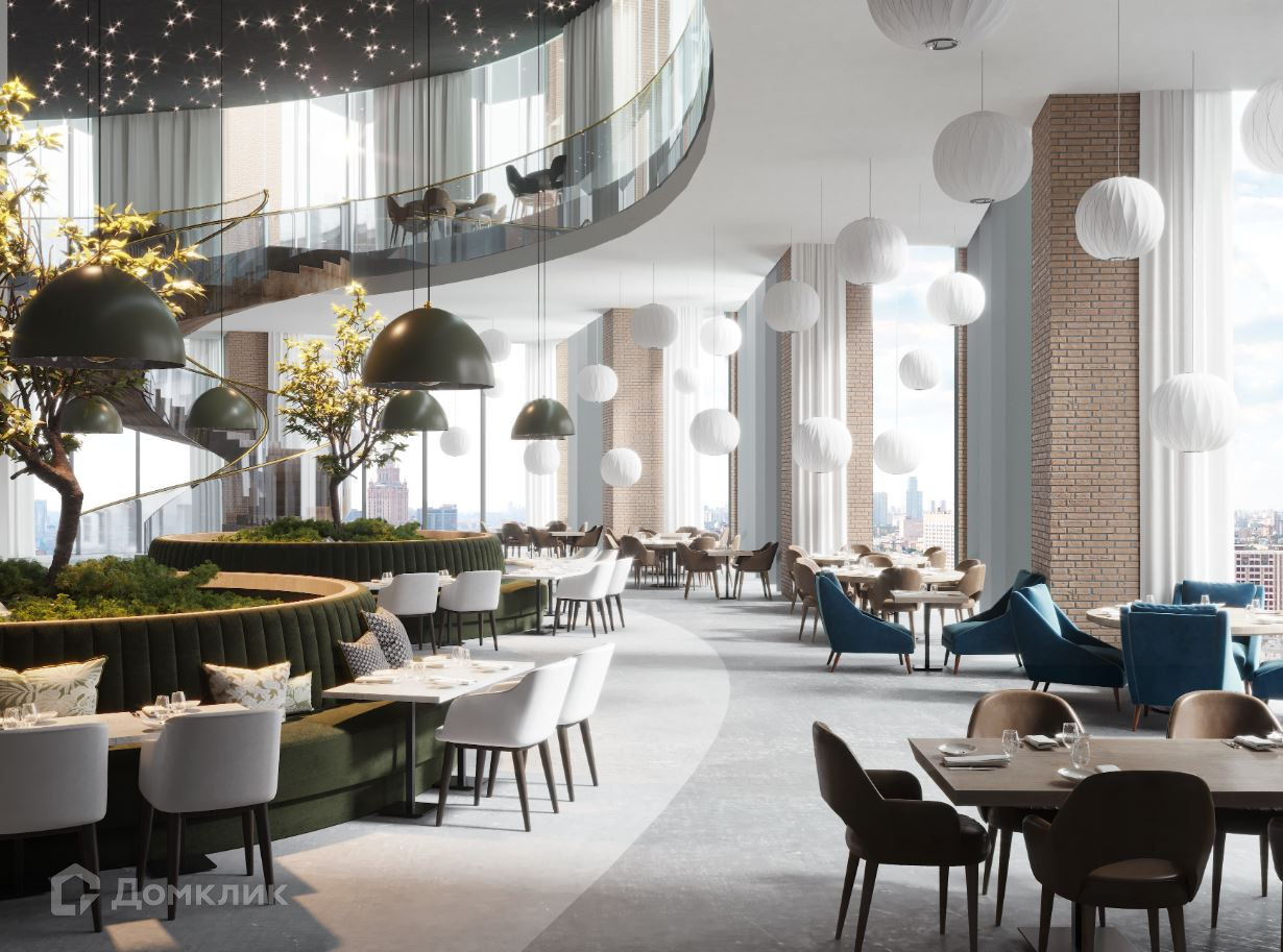Инфраструктура: панорамный ресторан с террасой на последнем этаже, кафе в зоне лобби, столовая, салон красоты, офис банка, сайкл студия, кросс-фит и йога центр, пункт приема химчистки, офис нотариуса.