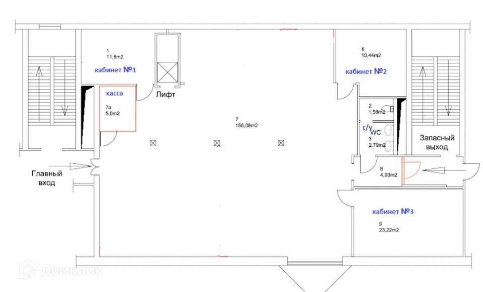 Помещение с высокими потолками 5 м! Арочные окна с прекрасными видами. Планировка: опен спейс 156,08 м, кабинет 11,6 м, кабинет 10,44 м, кабинет 23,22 м, с/ у, оборудованная касса.