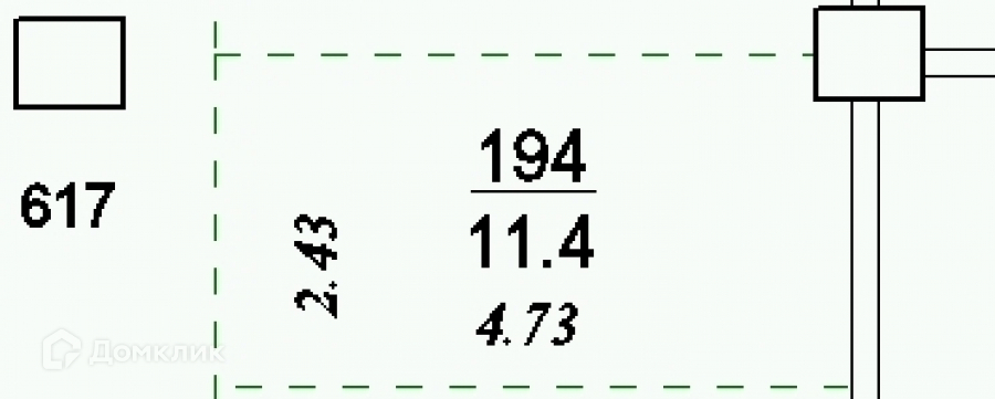 Общая площадь 11.4 м2