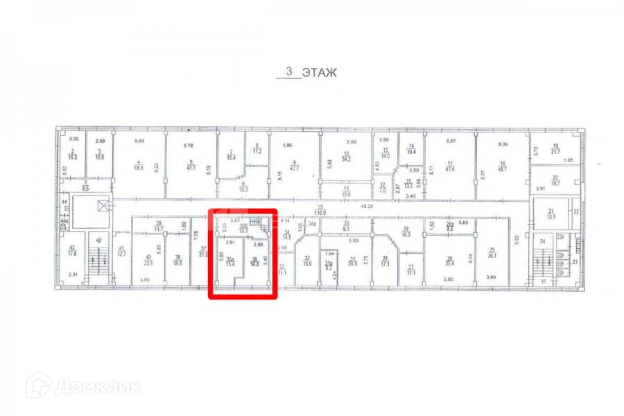 Общая площадь 44.3 м2
