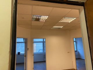 Вход в офис - общий с улицы, порошковая система пожаротушения.