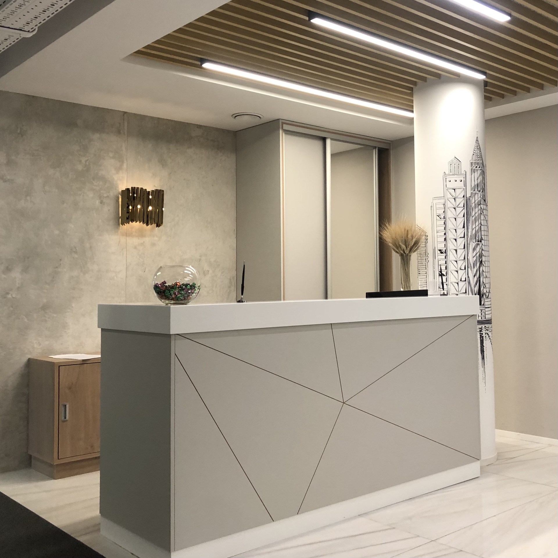 Новая современная мебель, офис чистый и светлый, сделан ремонт