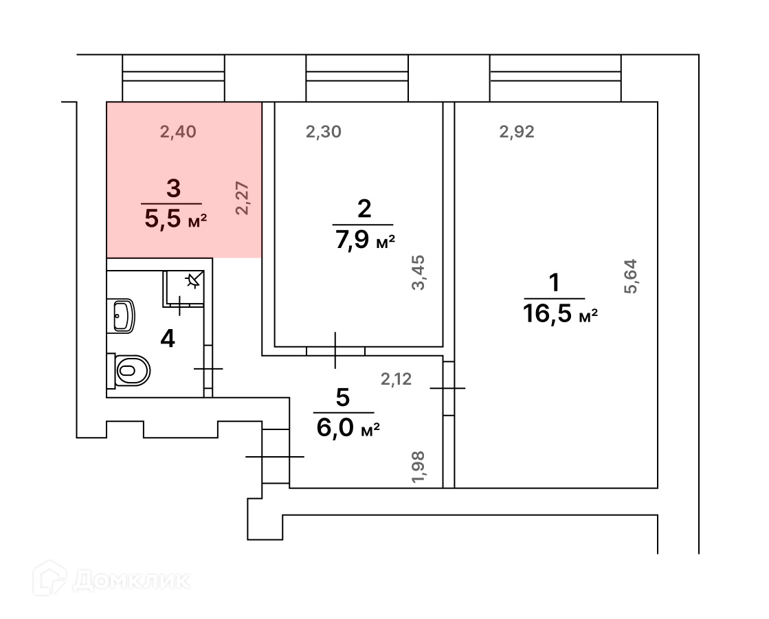 Общая площадь 5.5 м2
