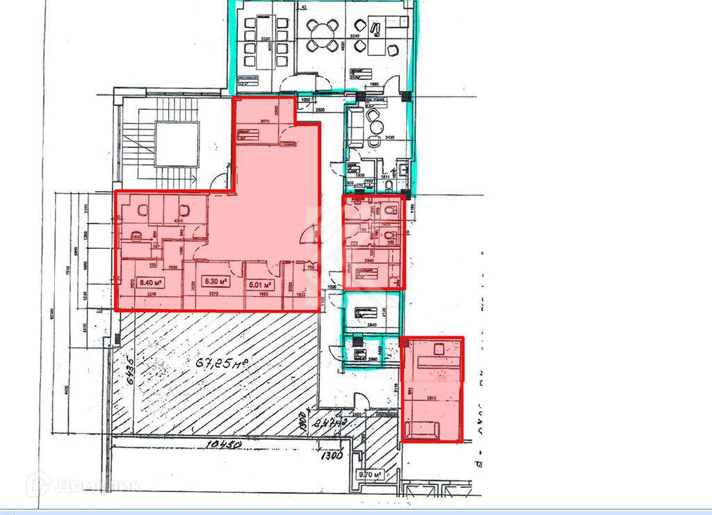 Арендная ставка: 450 000 руб/мес, УСН. Включая эксплуатационные расходы и коммунальные платежи, кроме электроэнергии и телефонии. На плане офис выделен красным цветом. Парковка: наземная 16 000 руб/место.