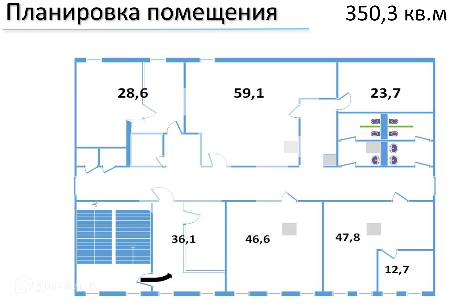 *Количество рабочих мест рассчитано автоматически: от 4,5 м2 на человека до 8 м2 на человека.