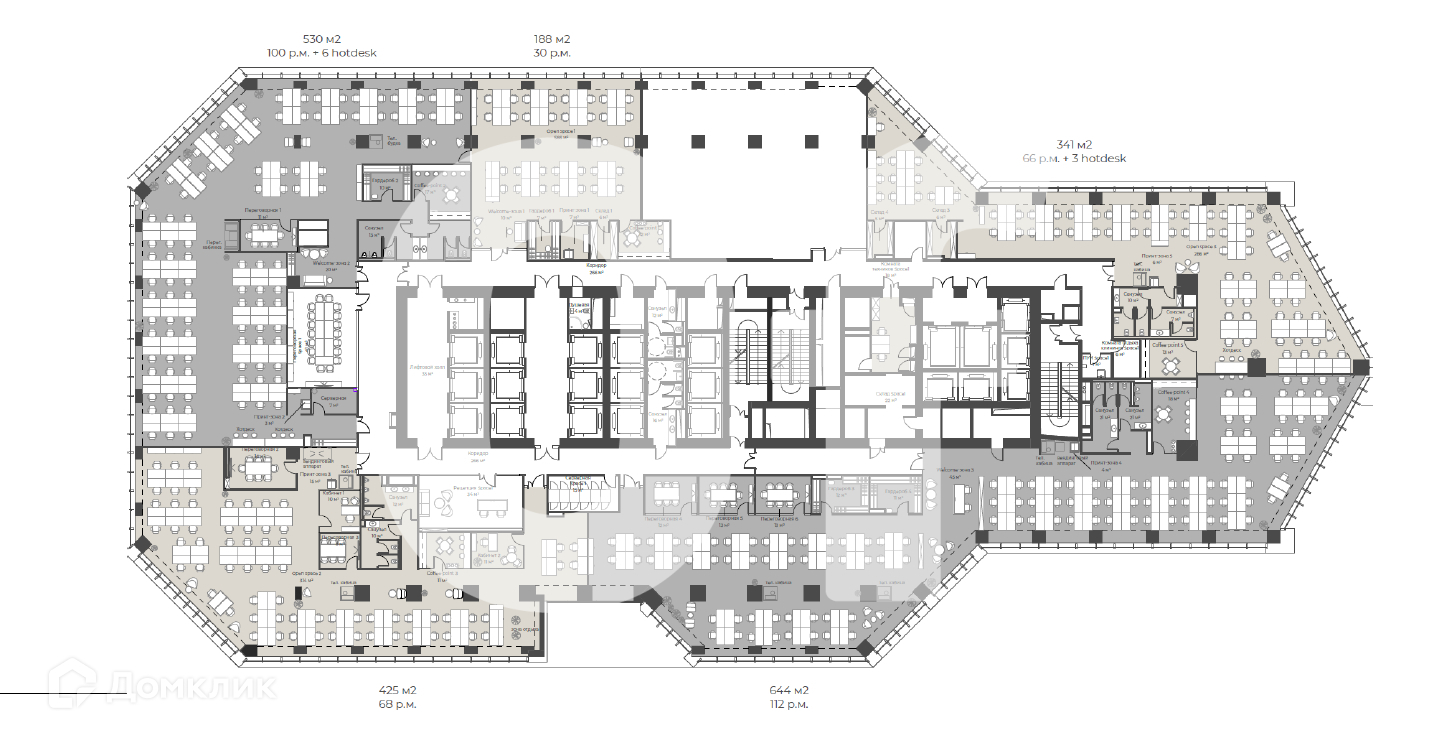 *Количество рабочих мест рассчитано автоматически: от 4,5 м2 на человека до 8 м2 на человека.