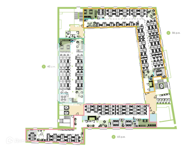 *Количество рабочих мест рассчитано автоматически: от 4,5 м2 на человека до 8 м2 на человека.