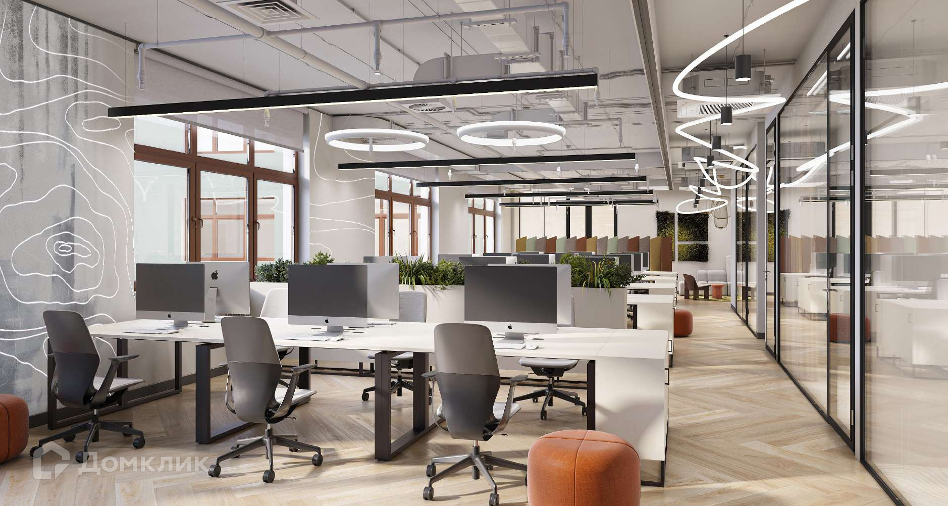 Офисное пространство планируется к открытию в 1 квартале 2024г. Выполняется современная отделка, планировка сочетает открытые пространства, кабинеты руководства, лаунж зоны, переговорные, серверную и тд. Помещения полностью меблированы.