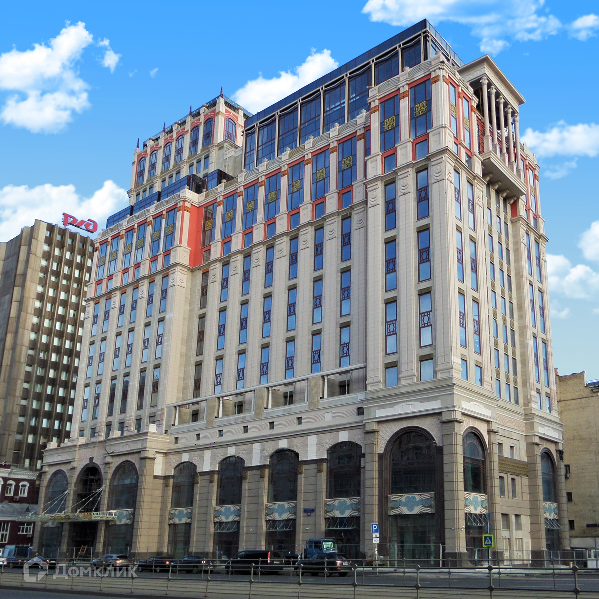 МФК «Краснопрудный» – 18-этажное здание общей площадью 31000 кв. м, выполненное в стиле эклектика с элементами модерна и «сталинской» неоклассической архитектуры.