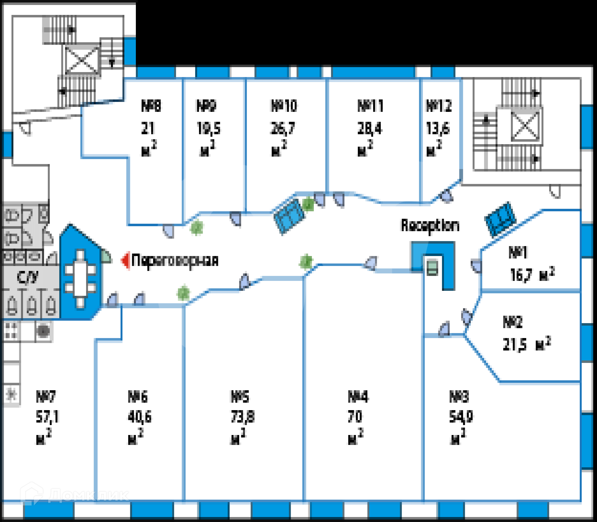 *Количество рабочих мест рассчитано автоматически: от 4,5 м2 на человека до 8 м2 на человека.