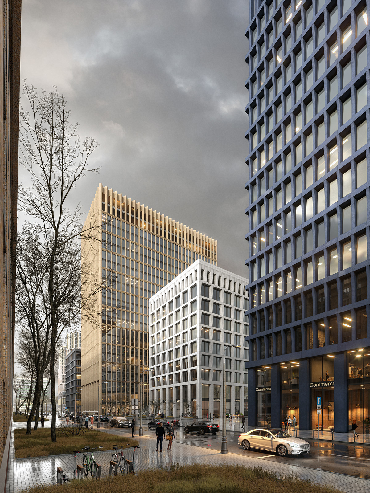 Башня "Tower В" занимает 23 наземных этажа, высотой 100 м.