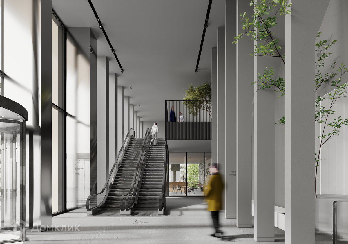 Функциональная входная группа и двухсветное лобби высотой 9 м.