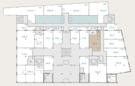 В современном Бизнес центра В+ класса сдается офисное помещение 96,4 кв.м. на 1-м этаже. С качественной отделкой, современные инженерные коммуникации, охраняемый паркинг, высота потолков  до 6м., 6 панорамных лифтов и 1 грузовой лифт, панорамное остекление, центральная часть ресепшена. На территории расположены рестораны, кафе, магазины, фитнес центр с бассейном. Удобное расположение, вблизи три вокзала, метро Комсомольская, МЦК Каланчевская, выезд на Садовое кольцо.