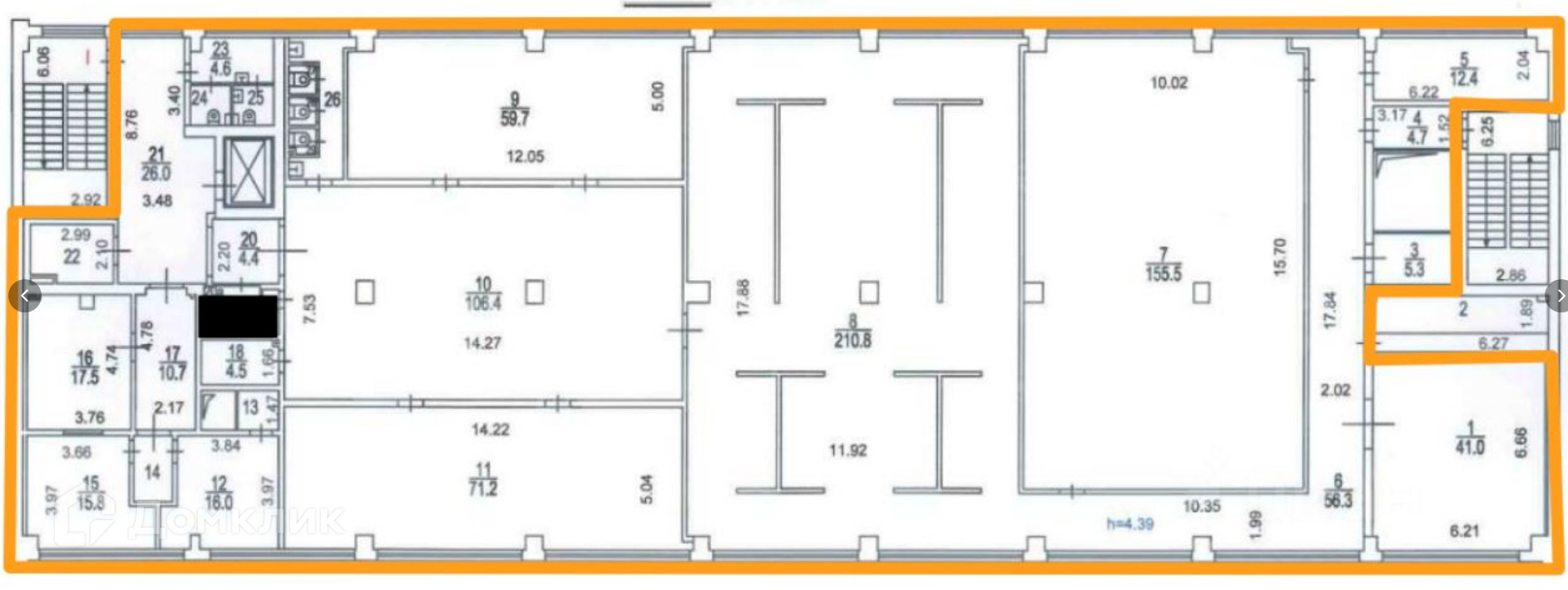 Высота потолков 4.39 м