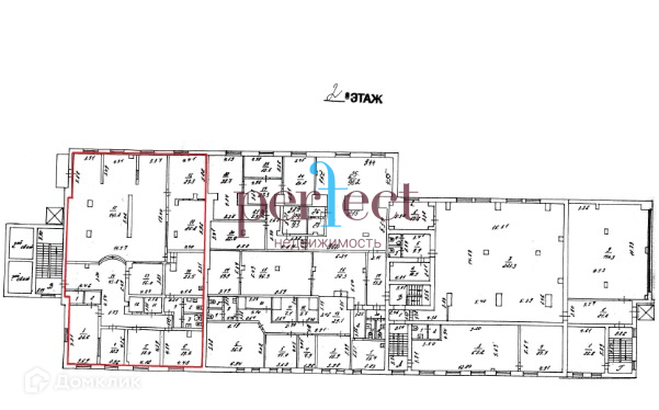 В БТИ помещение выделено красным цветом: 1 помещение – 378,5 м2;