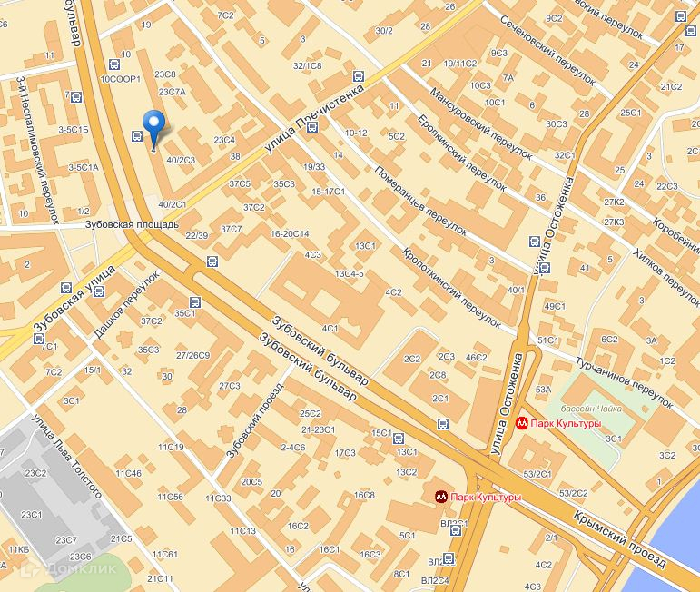 Особняк на первой линии Садового кольца, вдоль Зубовского б-ра, в пешей доступности от метро Парк культуры.