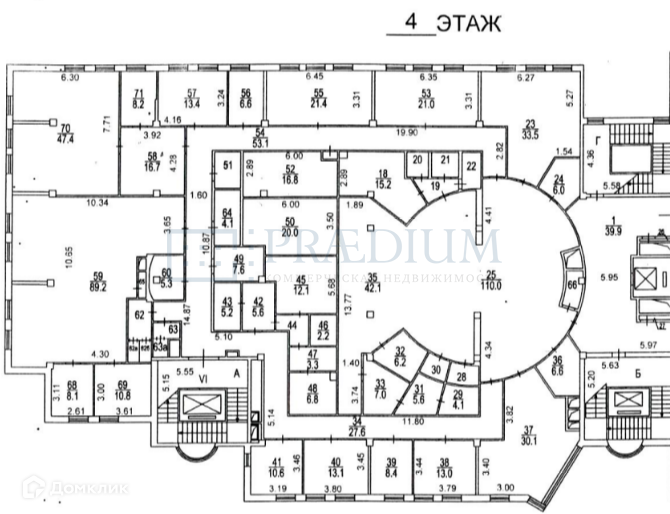 Офисное помещение на 4 этаже  6-этажного БЦ класса В+.