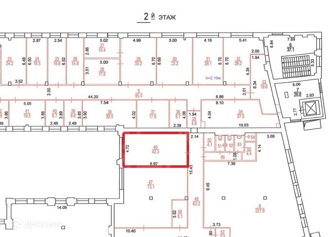 Общая площадь 42.3 м2
