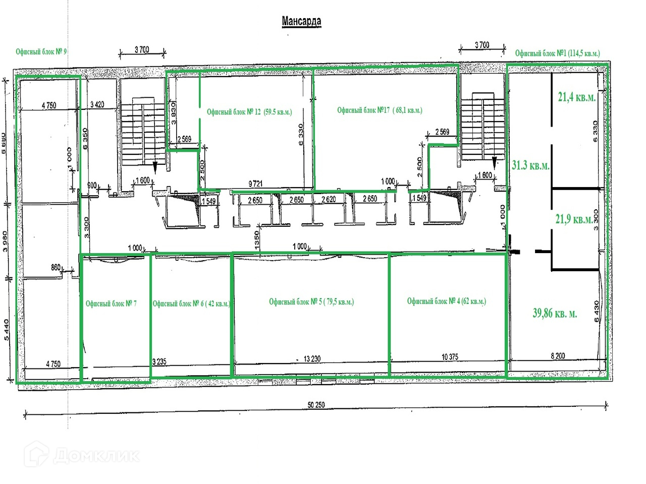 Предлагается в аренду помещение общей площадью 79,50 м² на мансардном этаже (6-й этаж). Лифта нет в здании.  Планировка кабинетная, состояние помещения – готово к въезду. Назначение – помещение для работы офисных сотрудников. Высота потолков – 3,0 м.