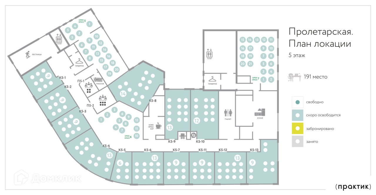 Офис рассчитан на 191 рабочее место.
